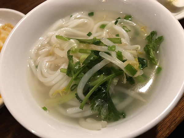 米線は平打で稲庭うどんに近いイメージ。つるつると喉越しがいい。