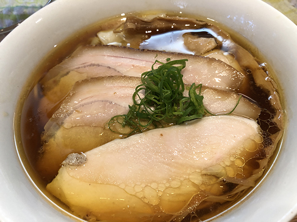具材は手前が鶏チャーシュー。感心しないお店が多い中、よく出来ている。