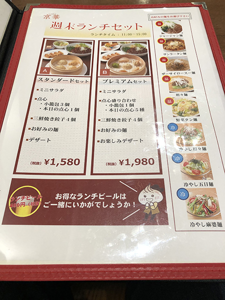 点心と餃子に麺類がセットになった週末ランチセットを注文。