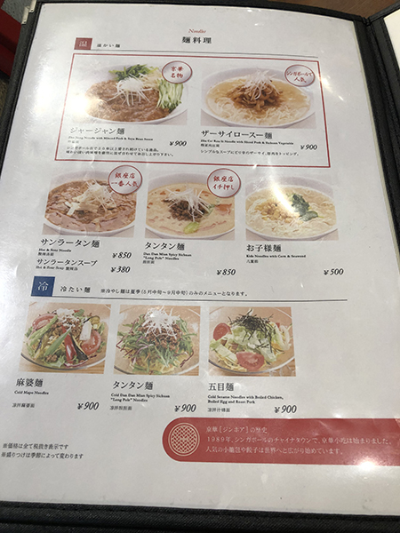 麺類は温かい麺と冷たい麺が合わせて8種類の中から選択できる。