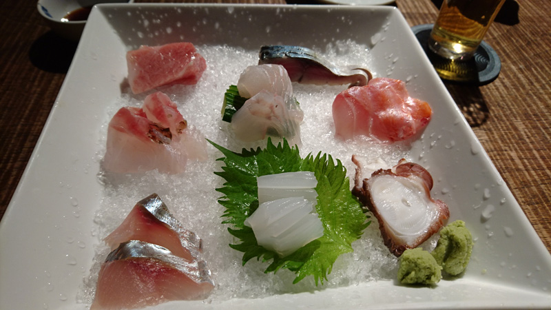 右上からまぐろ、〆鯖、鯛、平目、金目鯛、ニシン、イカ、タコ。少しずつ色々と頂けるのがこちらのお店の特徴で、地のものに限らない品揃えというのが特徴的。地のものでは金目鯛が甘みがあって飛び抜けて美味しい。
