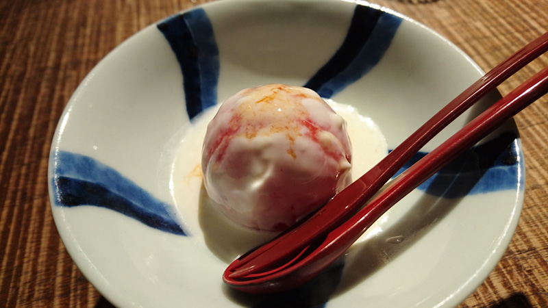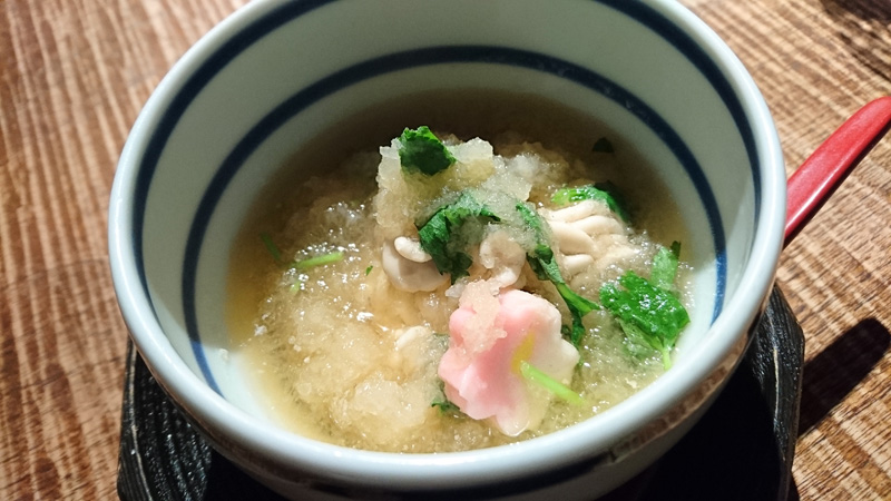 先ほどの蟹とは異なり出汁の旨味が強い。大根で白子の臭みを消しつつ、淡白な白子の味わいをうまくまとめ上げている。
