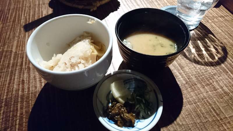 土鍋で炊かれたご飯は米が一粒一粒立っていて、いい塩梅でお焦げが有る絶妙な炊き加減。