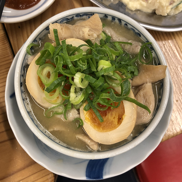 煮玉子が入ったもつ煮。もう少しくどいくらいの味付けを想像していたが、意外とすっきりとしたテイストでこれはこれで悪くない。