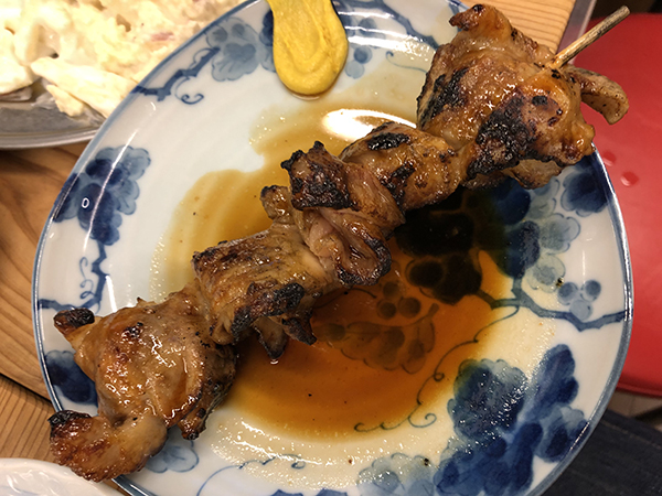 続いては串ものをやきとりとスーパーホルモンロールを注文。どちらもかなり大ぶりで1本130円とお得。