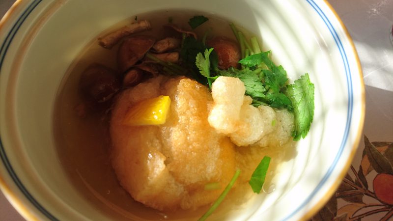 この料理も熱々を供してくれる。こちらの宿の名物料理のひとつで、ダシの旨味を纏った揚げ餅は滋味深く、朝だというのにスルッとお腹に収まってしまう。