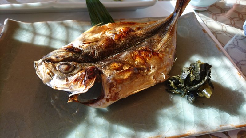 温泉宿の朝食では定番メニューだが、冷めた状態で出される事も多い中、焼き立てを運んでくれるのが嬉しい。皮目がパリッと香ばしく焼かれ、骨まで残すところなく頂ける。