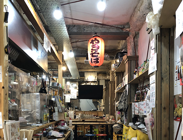 暖簾を見るとやきそば屋さんなのだが、屋号が書かれた看板には居酒屋と記されている。