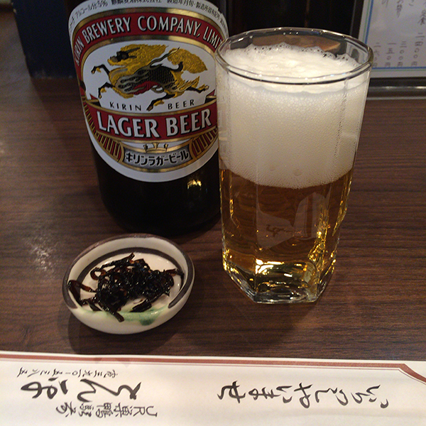 まずはビールで喉を潤す。合いの手に供されたのが昆布の佃煮というのがちょっと変わっている。