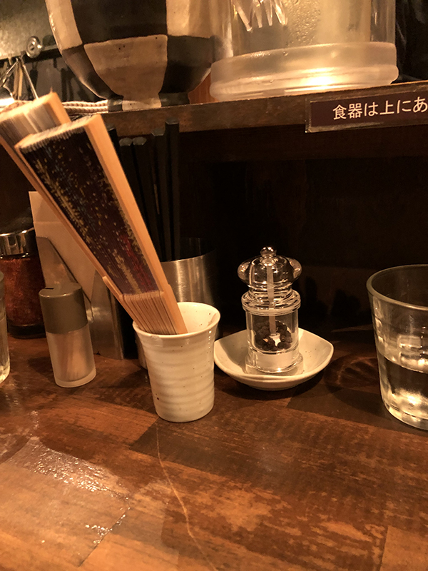 カウンターの上にはさりげなく、扇子が置かれている。この季節には嬉しい心遣いだ。