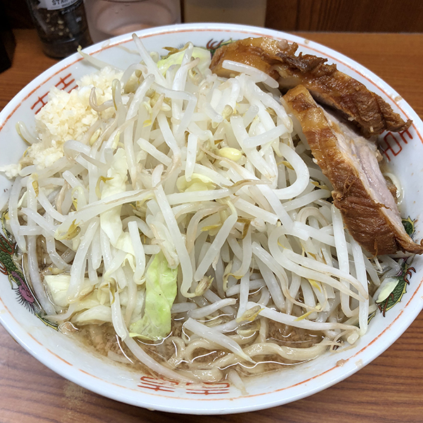 調べてみるとボリュームが多いとの事だったので麺・野菜とも少なめに。にんにくは入れて貰った。