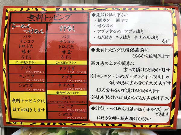 出来上がるタイミングでトッピングの内容を伝えるのだが、これが実にユニークなシステムを取っている。
