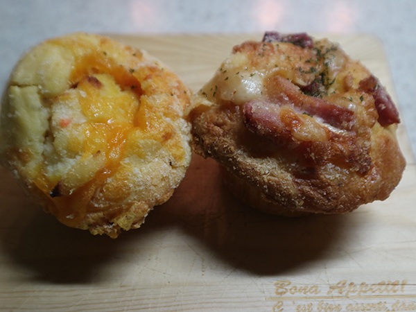 この2種類では右のベーコン&チーズに軍配が上がる。というのも、ベーコンの脂が少し溶け出しているのでボソボソ感が軽減されるようだ。一方、ポテトだと逆効果になっているように思えた。