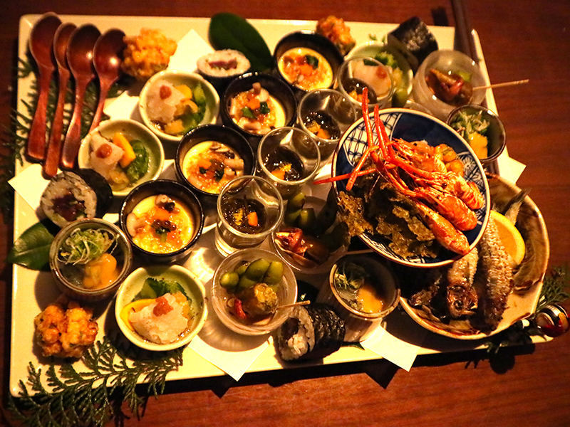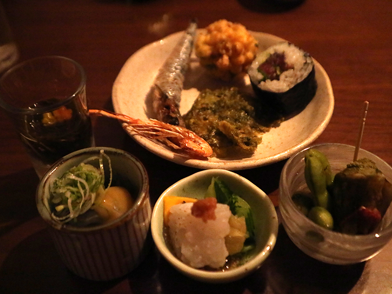 続いては、沢山の小鉢を乗せた大皿の登場。豪勢な見た目はまるで宝箱の様だ。心憎い演出である。皿鉢料理をこの店ならではのスタイルに体現した料理と言っても過言ではない。