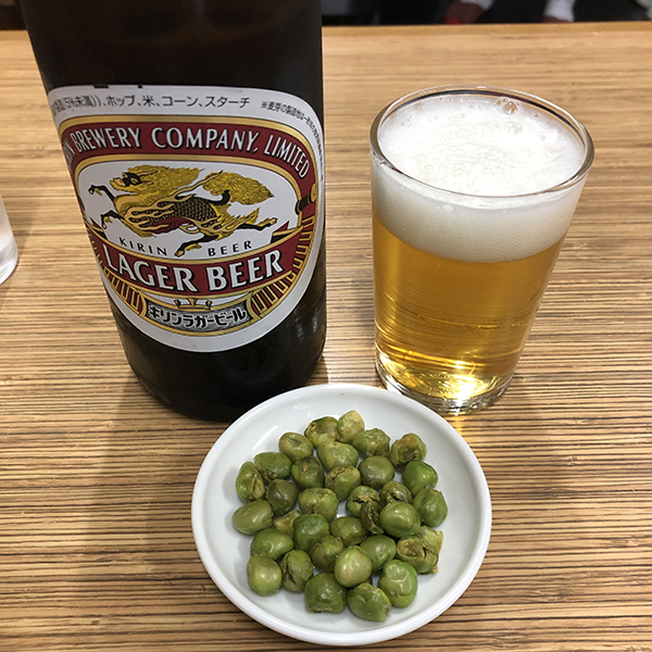 既に一軒振られたこともあって、ビールを注文。意外にもおつまみ付きだ。