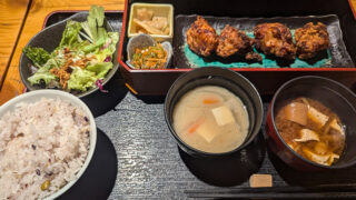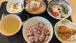 久しぶりに訪問。 今回は時間がなかったので冷奴、まぐろとろろ納豆、唐揚げ小に豚汁に五穀...