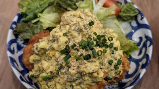 タルタルソースが豪快なドデカ盛りの居酒屋ランチ
