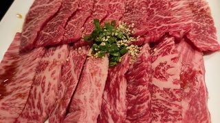 焼肉忘年会 目黒駅から恵比寿方面に歩くこと約2分の好立地。ビニールシートが印象的な外観。中...